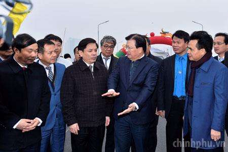 Ngày 7/1, Phó Thủ tướng thăm công trình cầu Thăng Long sau khi được sửa chữa. Ảnh: Nhật Bắc