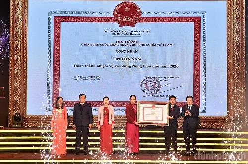 Ngày 13/1, Phó Thủ tướng trao Quyết định của Thủ tướng Chính phủ công nhận tỉnh Hà Nam hoàn thành nhiệm vụ xây dựng nông thôn mới. Ảnh: Đoàn Bắc