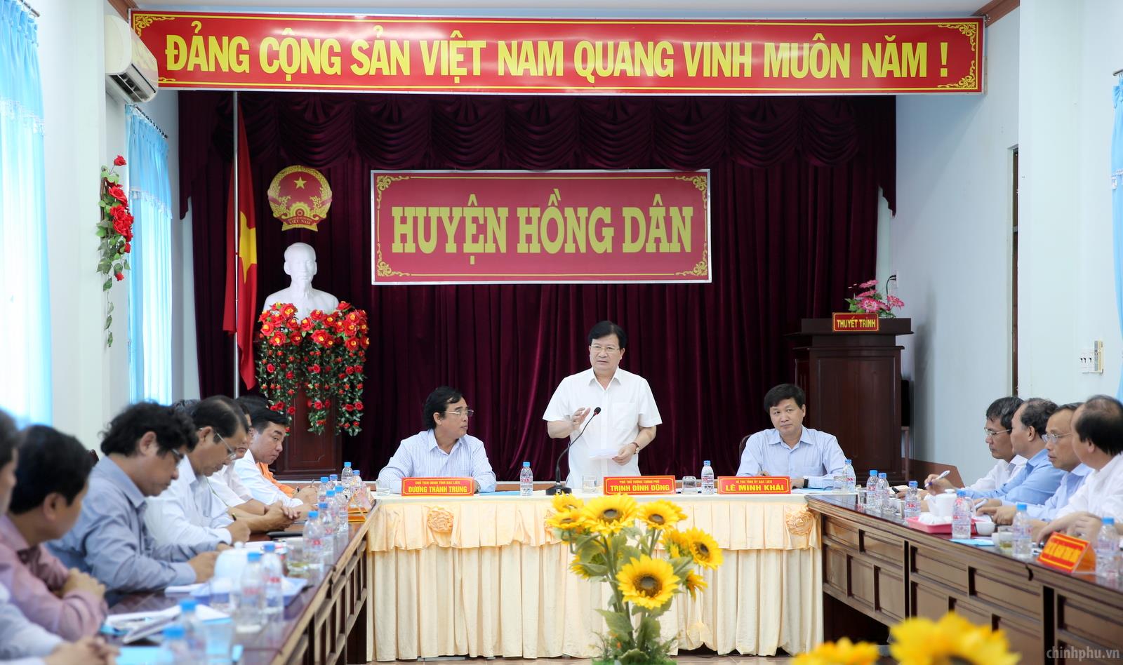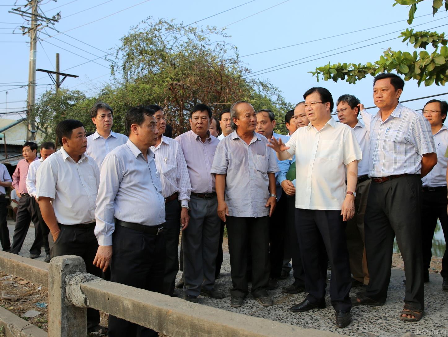 (Chinhphu.vn) - Ngày 27/4, Phó Thủ tướng Trịnh Đình Dũng đã dẫn đầu đoàn công tác Chính phủ khảo sát tình hình hạn mặn tại hai tỉnh Bạc Liêu và Sóc Trăng. Tại tỉnh Bạc Liêu, Phó Thủ tướng Trịnh Đình Dũng đã đi khảo sát tình hình hạn hán, nhiễm mặn, thăm hỏi bà con tại khu tam giác Ninh Quới, huyện Hồng Dân.