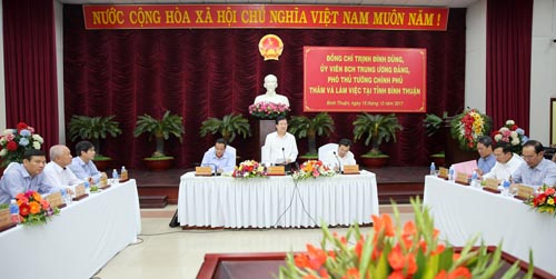 Phát biểu tại cuộc làm việc, Phó Thủ tướng Trịnh Đình Dũng đánh giá cao và biểu dương nỗ lực và những kết quả đã đạt được của Đảng bộ, chính quyền, quân và dân tỉnh Bình Thuận trong những năm qua, góp phần quan trọng vào thành tựu phát triển kinh tế-xã hội chung của vùng và cả nước.