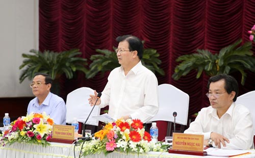 “Tỉnh cần tập trung và huy động các nguồn lực để đẩy mạnh đầu tư kết cấu hạ tầng, trước hết là hạ tầng giao thông (đường cao tốc, đường ven biển), hạ tầng đô thị và hạ tầng du lịch. Quan tâm kêu gọi nhà đầu tư lớn đầu tư vào hạ tầng du lịch, tạo bước đột phá đồng thời thu hút nhiều nhà đầu tư nhỏ nhằm phát triển toàn diện ngành du lịch của tỉnh”, Phó Thủ tướng nói.