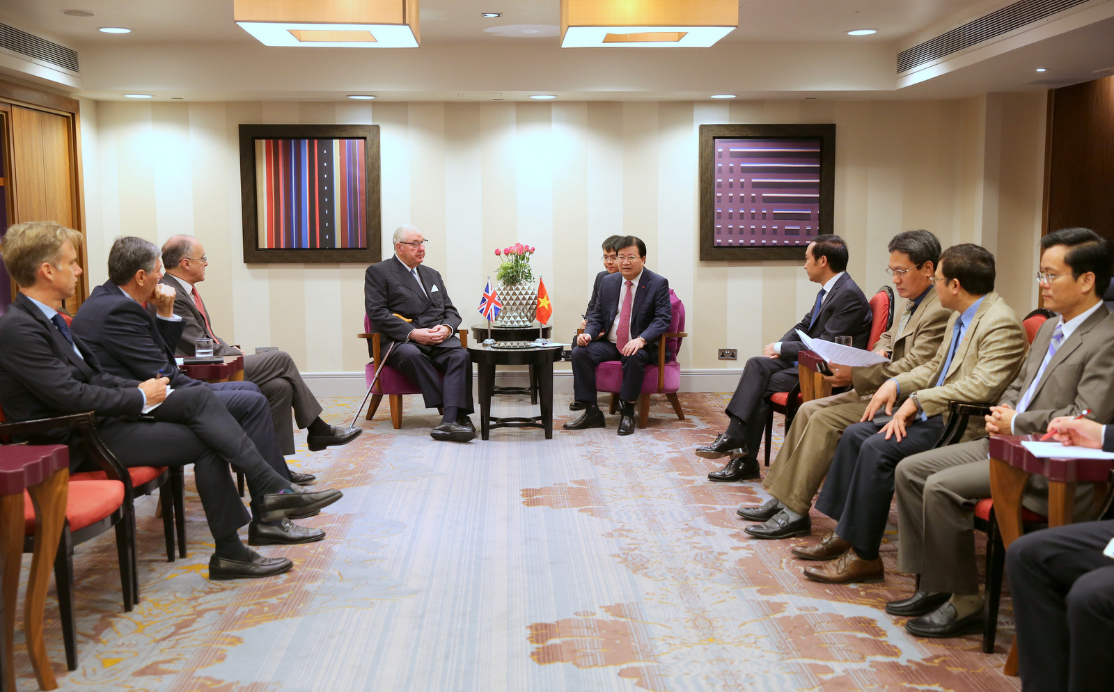 Phó Thủ tướng Trịnh Đình Dũng đề nghị Chính phủ Anh khuyến khích, hỗ trợ doanh nghiệp Anh làm ăn với Việt Nam thông qua ưu đãi vốn vay, tổ chức các đoàn xúc tiến thương mại, đầu tư đến Việt Nam; quan tâm hỗ trợ Việt Nam trong các lĩnh vực ưu tiên như cải thiện môi trường kinh doanh, ứng phó với biến đổi khí hậu và phát triển cơ sở hạ tầng; tiếp tục ủng hộ Việt Nam trong kỳ IDA 18…