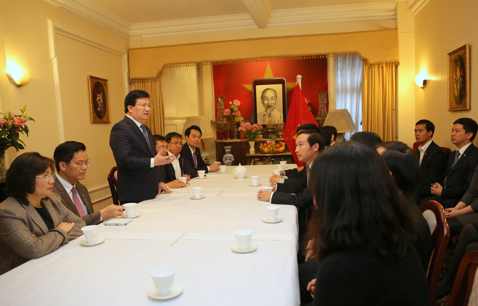 Nhân dịp chuyến công tác, Phó Thủ tướng Chính phủ Trịnh Đình Dũng và Đoàn đã đến thăm Đại sứ quán Việt Nam tại Anh, gặp gỡ cán bộ, nhân viên Đại sứ quán và đại diện cộng đồng người Việt Nam tại Anh. Phó Thủ tướng đánh giá cao những đóng góp tích cực của cán bộ, nhân viên Đại sứ quán trong phát triển quan hệ hợp tác nhiều mặt giữa Việt Nam và Anh cũng như công tác bảo hộ công dân, vận động người Việt Nam tại Anh tham gia các hoạt động hướng về đất nước; biểu dương cộng đồng người Việt Nam tại Anh hòa nhập tốt với xã hội sở tại, chủ động đóng vai trò cầu nối thúc đẩy quan hệ hợp tác hai bên.