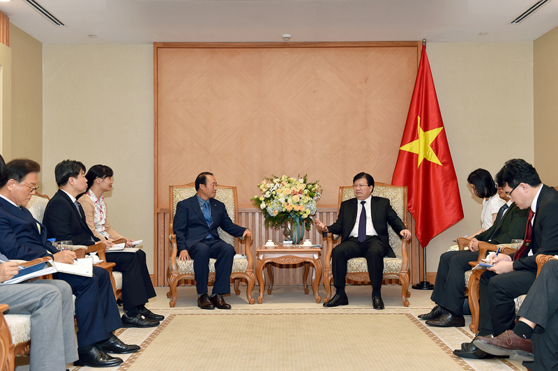Phó Thủ tướng Trịnh Đình Dũng tiếp Chủ tịch, Tổng Giám đốc KOSPO Yoon Jong Keun. Ảnh: VGP/Nhật Bắc