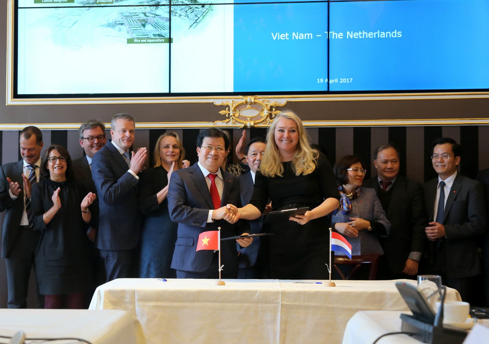 Phó Thủ tướng Trịnh Đình Dũng và Bộ trưởng Cơ sở hạ tầng và Môi trường Melanie Schultz đã đồng chủ trì Phiên họp lần thứ sáu Ủy ban liên Chính phủ Việt Nam-Hà Lan về Thích ứng với biến đổi khí hậu và Quản lý nước. Hai bên ghi nhận kết quả hợp tác tốt đẹp kể từ sau Phiên họp lần thứ năm (tại Hà Nội tháng 3/2016), khẳng định quyết tâm chính trị nhằm hiện thực hóa các thỏa thuận, thúc đẩy hơn nữa quan hệ Đối tác chiến lược, đặc biệt là tiếp tục triển khai Kế hoạch Đồng bằng sông Cửu Long, hợp tác sông Hồng, hợp tác giữa Thành phố Hồ Chí Minh và thành phố Rotterdam cũng như giữa Hà Nội và Amsterdam tập trung vào lĩnh vực quy hoạch liên vùng, chuyển đổi sản xuất nông nghiệp bền vững, quản lý tài nguyên nước, chống hạn hán, xâm nhập mặn, xói mòn và sạt lở bờ sông và bờ biển…