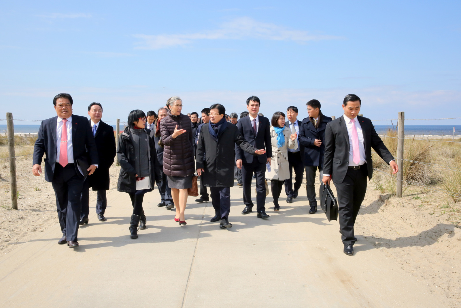 Đoàn công tác thăm công trình động cơ cát  - giải pháp chống xói mòn bờ biển dựa vào sóng, thuỷ triều tại Hà Lan. Ảnh: VGP/Xuân Tuyến