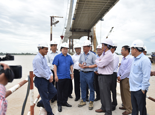 Sau khi kiểm tra 2 tuyến quốc lộ, Phó Thủ tướng Chính phủ Trịnh Đình Dũng và đoàn công tác đã đi kiểm tra dự án cầu Vàm Cống và dự án cầu Cao Lãnh.