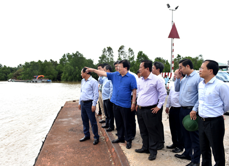 Phó Thủ tướng Trịnh Đình Dũng thị sát Bến phà Đại Ngãi. Ảnh: VGP/Nguyễn Hoàng