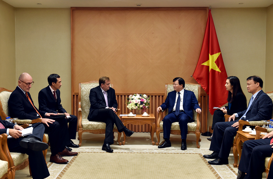 Phó Thủ tướng Trịnh Đình Dũng tiếp ông Paul Greenwood, Phó Chủ tịch Tập đoàn Exxon Mobil. Ảnh: VGP/Nhật Bắc