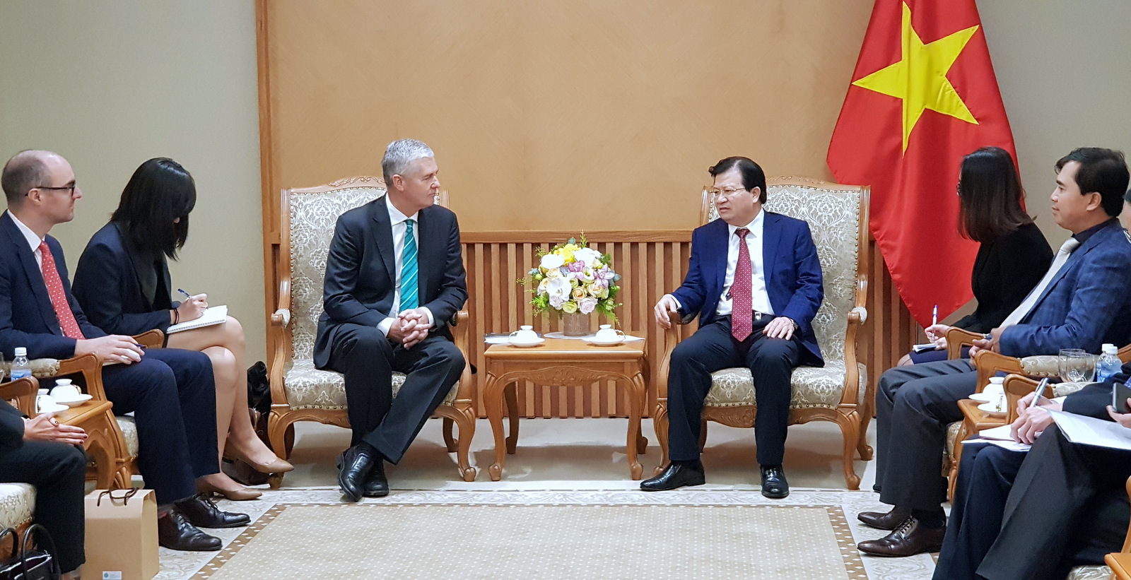 Phó Thủ tướng Trịnh Đình Dũng tiếp Tổng Giám đốc GGGI, ông Frank Rijsberman. Ảnh: VGP/Xuân Tuyến