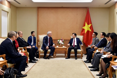 Phó Thủ tướng Trịnh Đình Dũng tiếp ông Richard Courey, Chủ tịch kiêm, Tổng Giám đốc Tập đoàn Vision Transportation Group - Ảnh: VGP/Nhật Bắc