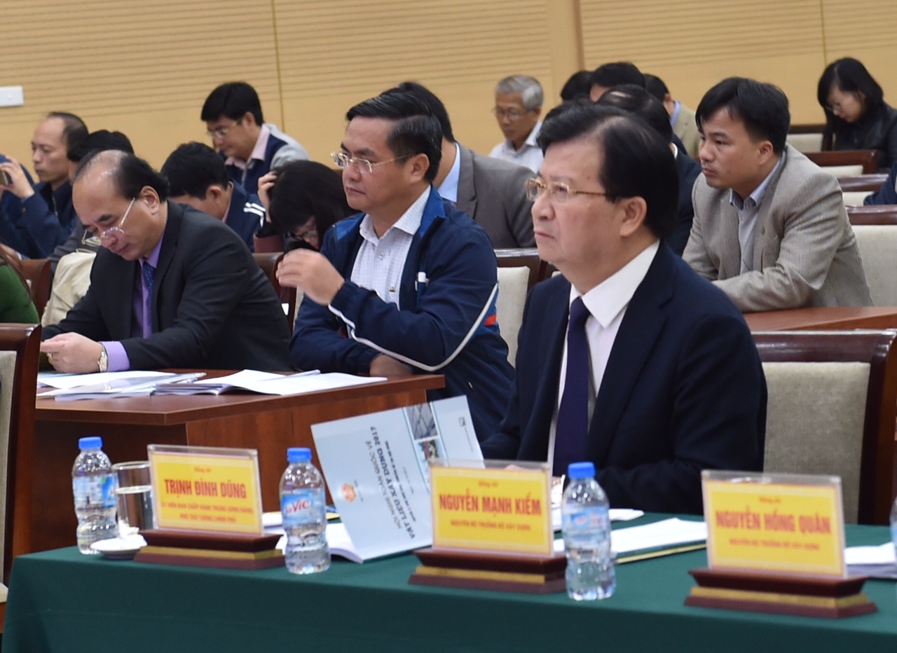 Phó Thủ tướng Trịnh Đình Dũng, Bộ trưởng Bộ Xây dựng Phạm Hồng Hà đồng chủ trì hội nghị.
