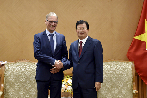 (Chinhphu.vn) - Tiếp ông Michael Dorner, Giám đốc phụ trách các dự án quốc tế của Ngân hàng Tiết kiệm nhà ở Schwäbisch Hall (Đức) sáng 2/8, Phó Thủ tướng Trịnh Đình Dũng khẳng định Việt Nam sẽ nghiên cứu, học hỏi thêm các mô hình hiệu quả để phát triển nhà ở cho người dân, trong đó có mô hình ngân hàng tiết kiệm nhà ở tại Đức.